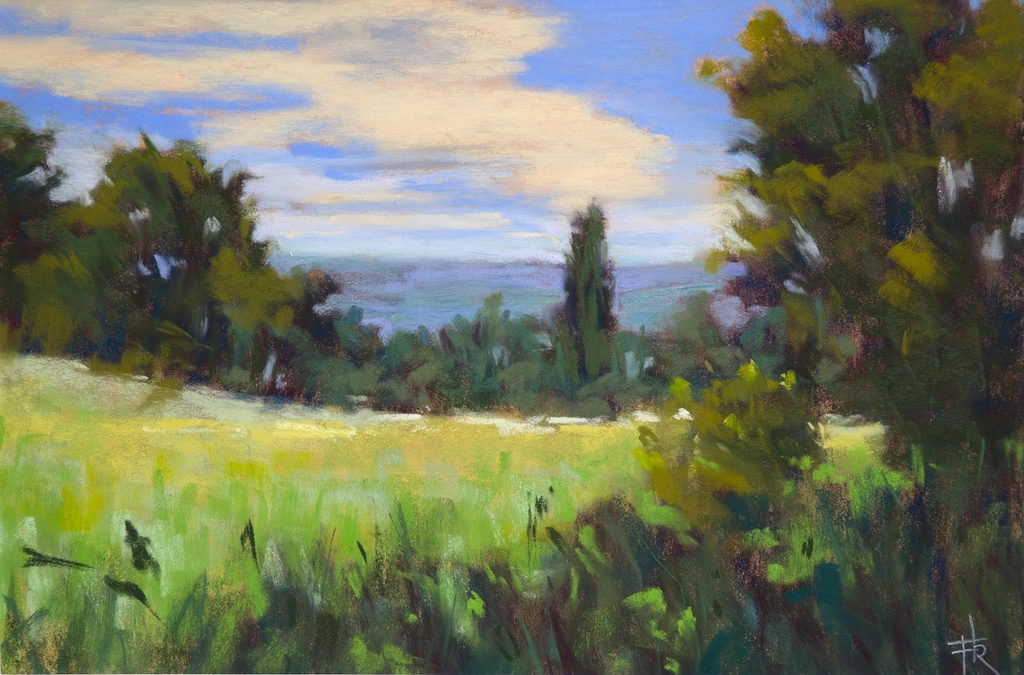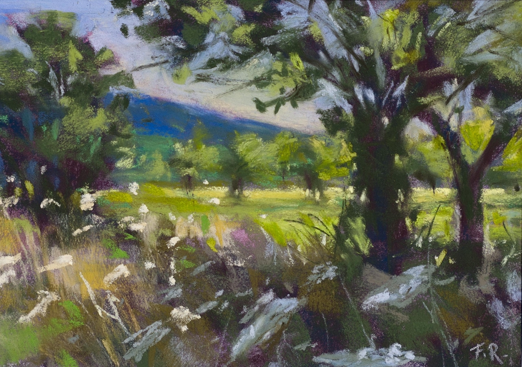 À travers le pastel sec, Florian Rouliès explore la poésie du paysage et la beauté de l'éphémère. Privilégiant les compositions simples et équilibrées, il compose une œuvre intime et douce, en essayant de capter l'instant et la beauté discrète des lieux.