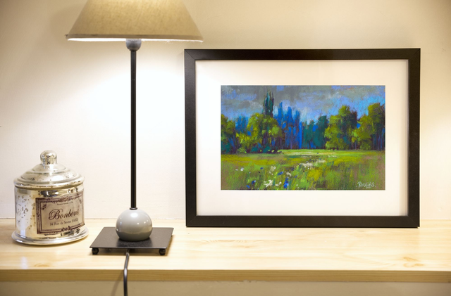 "Pré en herbe au printemps", Florian Rouliès. Pastel sec sur papier, 30 cm x 20 cm, original signé par l'artiste. Expédié sans cadre.