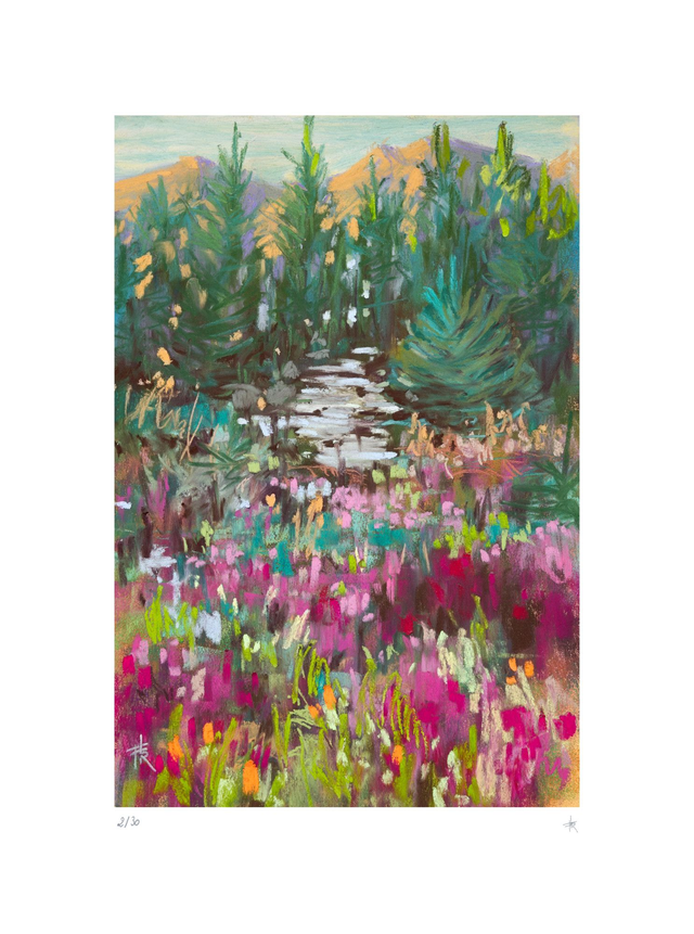 "Epilobes en Ecosse", tirage d'art numéroté et signé par l'artiste. Dimensions : 30cm x 40cm incluant la marge. Edition limitée à 30 exemplaires, imprimés sur papier d'art haute qualité, 100% mèche de coton, sans azurant optique. Les tirages sont réalisés à la demande, dans un atelier spécialisé. Les envois se feront donc dans un délai d'une vingtaine de jours ouvrés suivant la commande. Vendu sans cadre.