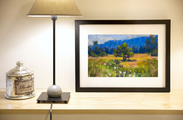"Arbre et pré en vallée du Cern", Florian Rouliès. Pastel sec sur papier, 23 cm x 14 cm, original signé par l'artiste. Expédié sans cadre.
