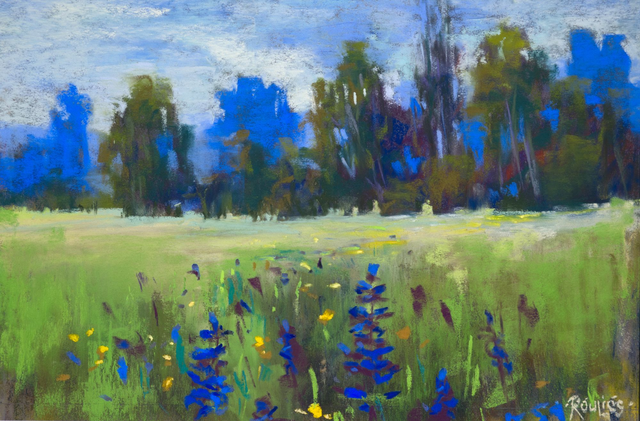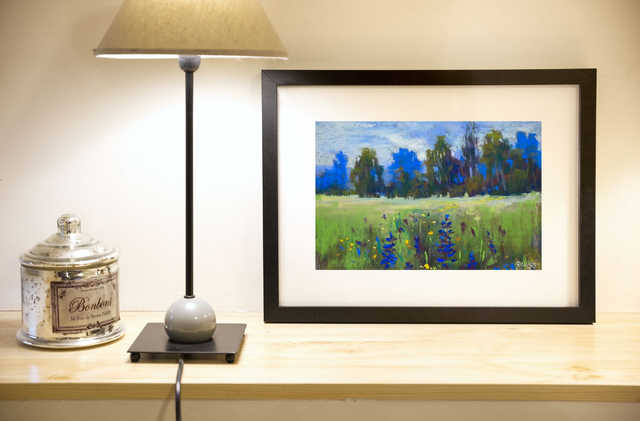 "Fleurs sauvages au printemps", Florian Rouliès. Pastel sec sur papier, 30 cm x 20 cm, original signé par l'artiste. Expédié sans cadre.
